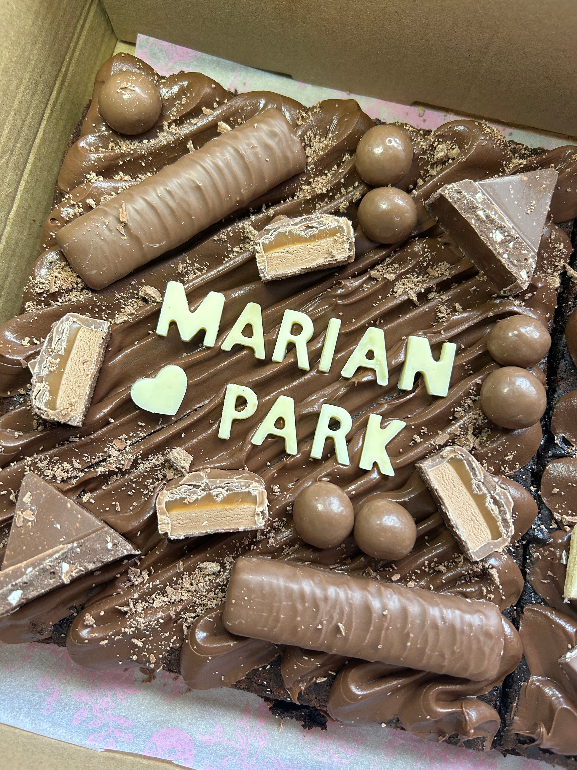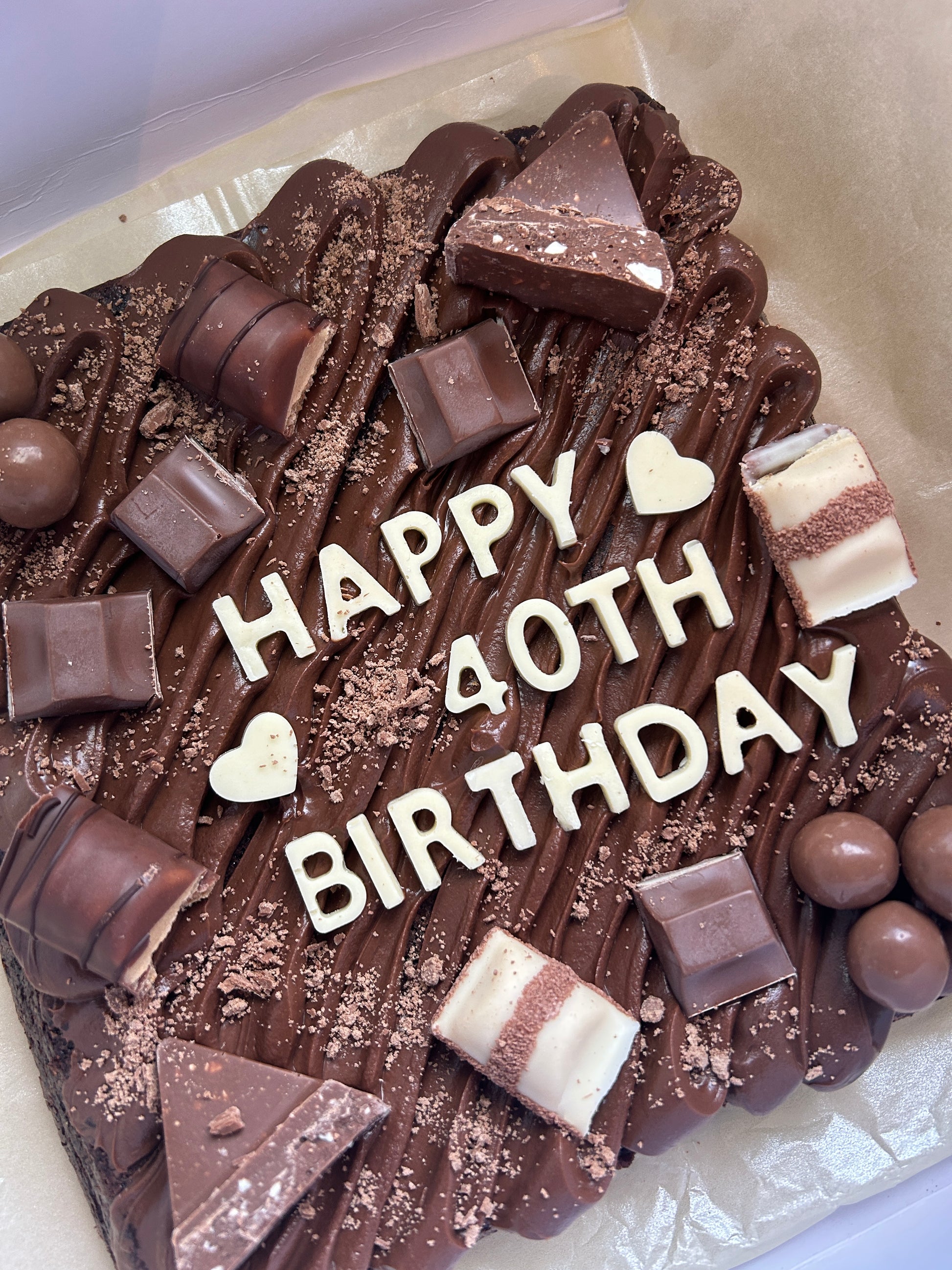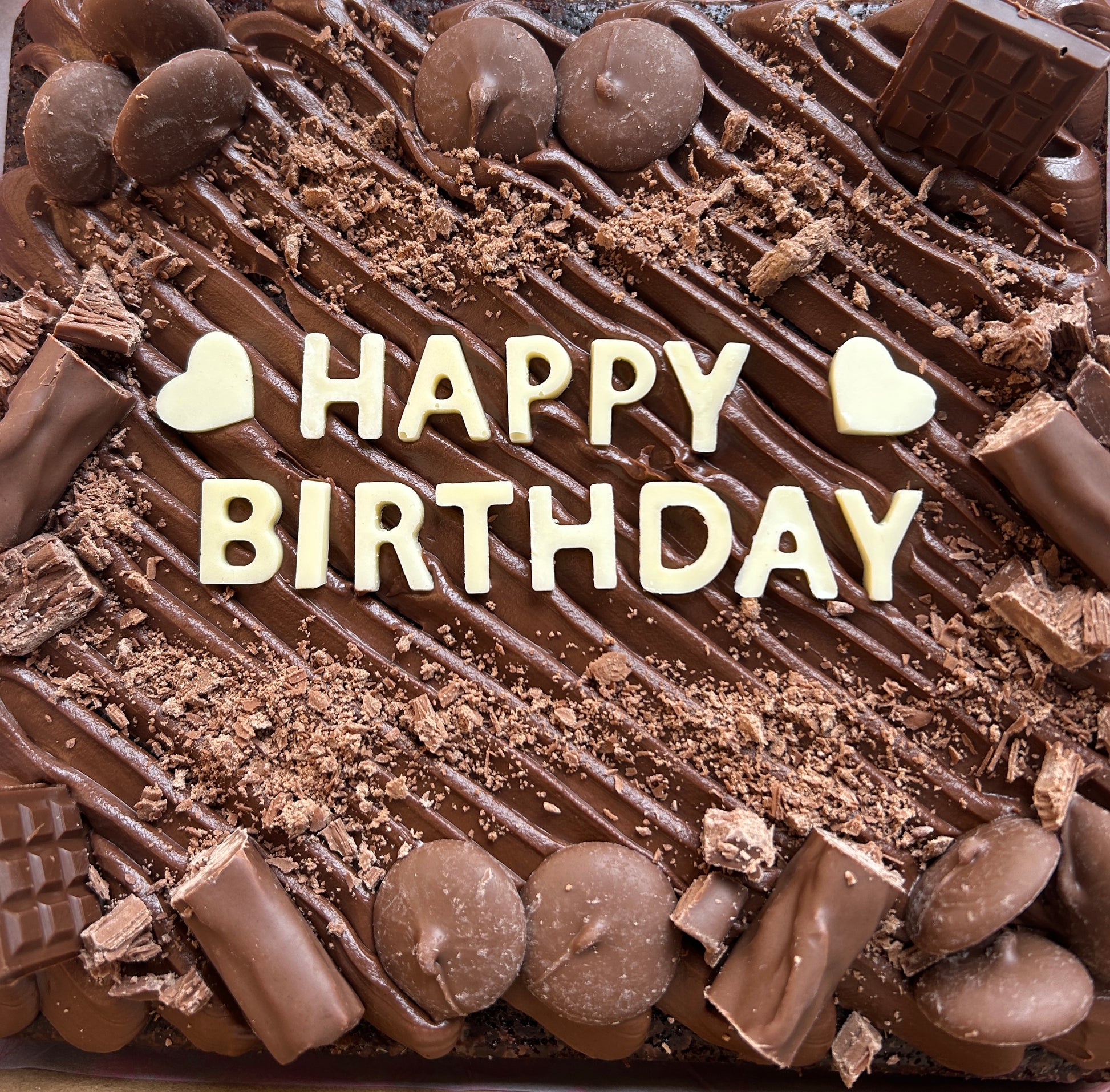 Perfect for chocolate lovers - the brownie slab can be personalised to add a special touch to your celebration and the choice of toppings is up to you!