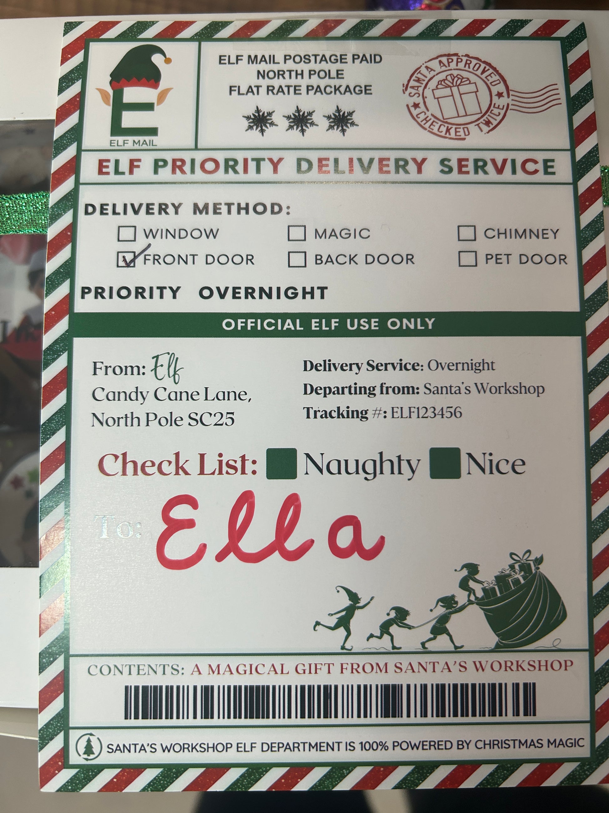 📮 Personalised Elf Delivery note from the North Pole